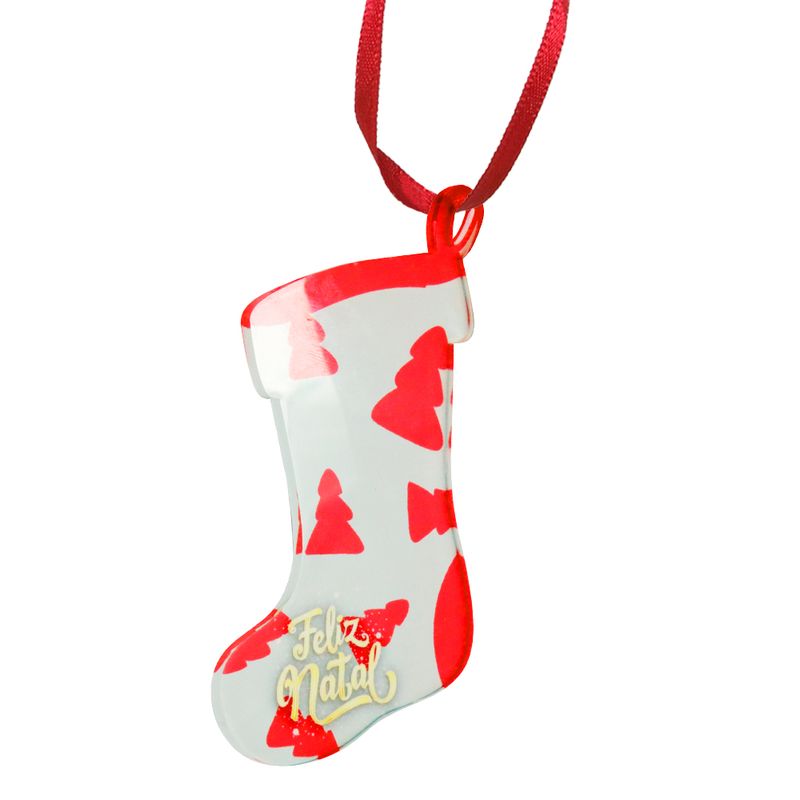 Pingente Botinha de Natal em Acrílico Cristal | Personalizável por Sublimação