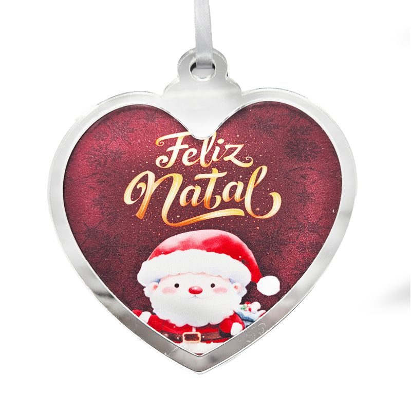 O Pingente de Coração para Árvore de Natal em MDF com Borda em Acrílico Prateado para Sublimação é uma peça refinada que une o toque natural da madeira ao brilho metálico do acrílico prateado. A área central em MDF sublimável permite personalizar com frases, nomes ou imagens, criando decorações únicas e cheias de significado.