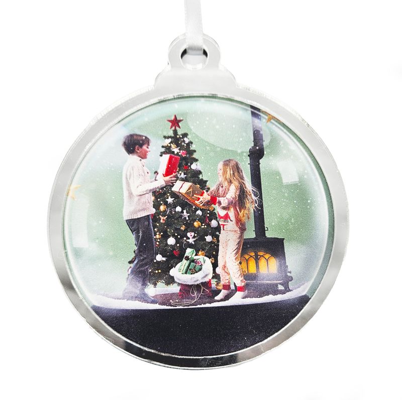 O Pingente de Bola para Árvore de Natal em Acrílico Cristal com Borda Prateada para DTF-UV é o clássico que não pode faltar na sua decoração natalina. Produzido em acrílico cristal de alta transparência, possui borda prateada metálica, que proporciona um toque elegante e moderno. Compatível com personalização DTF-UV, permite aplicar imagens e frases com excelente aderência, brilho e durabilidade.