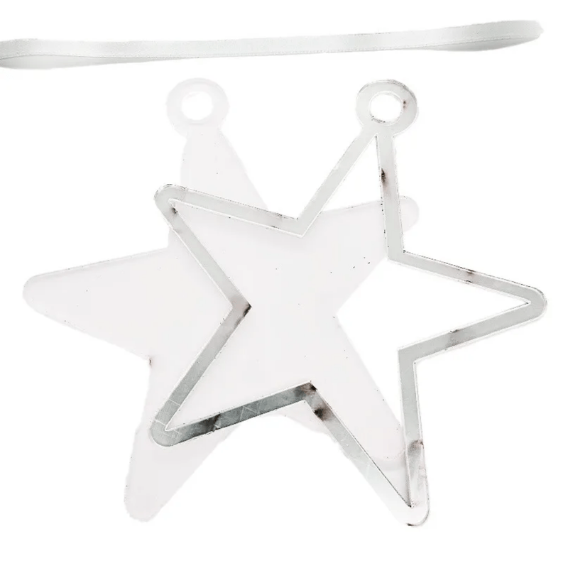 O Pingente de Estrela para Árvore de Natal em Acrílico Cristal com Borda Prateada para DTF-UV é o enfeite ideal para adicionar um toque moderno e elegante à sua decoração natalina. Produzido em acrílico cristal transparente, conta com borda prateada metálica, que reflete a luz com delicadeza e valoriza qualquer arte aplicada com DTF-UV, garantindo alto brilho e excelente aderência.