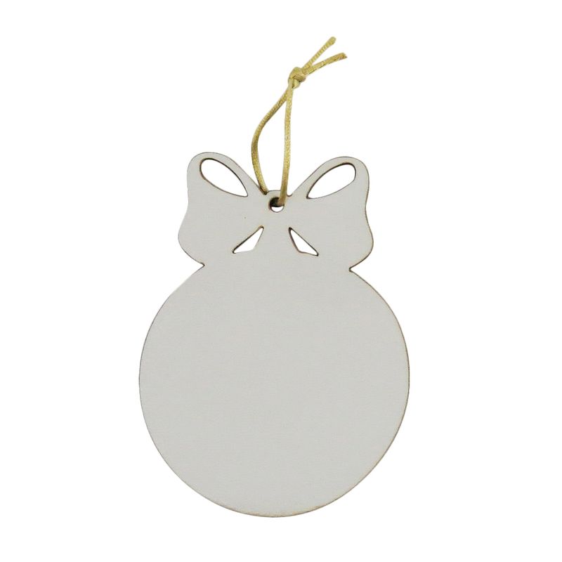 Pingente Bola de Natal com Laço em MDF Texturizado – 7x9,5cm | Personalizável por Sublimação