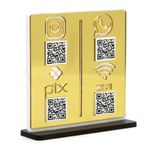 A Placa de Acrílico QR CODE Dourado 15x15cm com Base de MDF Preto 6mm é um item moderno e funcional para uso comercial ou decorativo. Fabricada em acrílico dourado com acabamento elegante, acompanha uma base de MDF preto de 6mm, garantindo estabilidade e contraste visual.