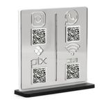 A Placa de Acrílico QR CODE Prata 15x15cm com Base de MDF Preto 6mm é um item moderno e funcional para uso comercial ou decorativo. Fabricada em acrílico prata com acabamento elegante, acompanha uma base de MDF preto de 6mm, garantindo estabilidade e contraste visual.