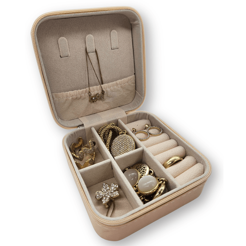 Este porta-joias compacto e elegante, é perfeito para quem deseja uma forma prática e segura de armazenar suas joias e bijuterias. A estrutura externa é feita de PU e fácil de limpar, e a parte interna de TNT aveludado, com diversas divisórias, incluindo três ganchos na parte superior para pendurar colares ou pulseiras, evitando que se embaracem.