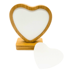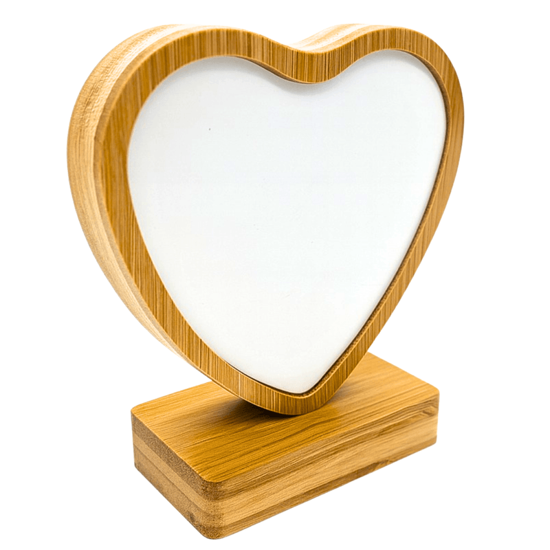 Porta Retrato em Bambu com Chapa de Alumínio Sublimática | Formato Coração com Suporte Magnético