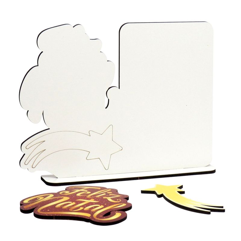 O Porta-retrato de MDF 3mm Feliz Natal – 20x15cm é uma peça especial para decorações e lembranças natalinas. Produzido em MDF de 3mm texturizado e resinado, está pronto para sublimação, oferecendo cores vivas e excelente definição de imagem. O detalhe em aplique com a frase “Feliz Natal” agrega charme e exclusividade à peça, tornando-a perfeita para presentes, kits personalizados e composições decorativas festivas.