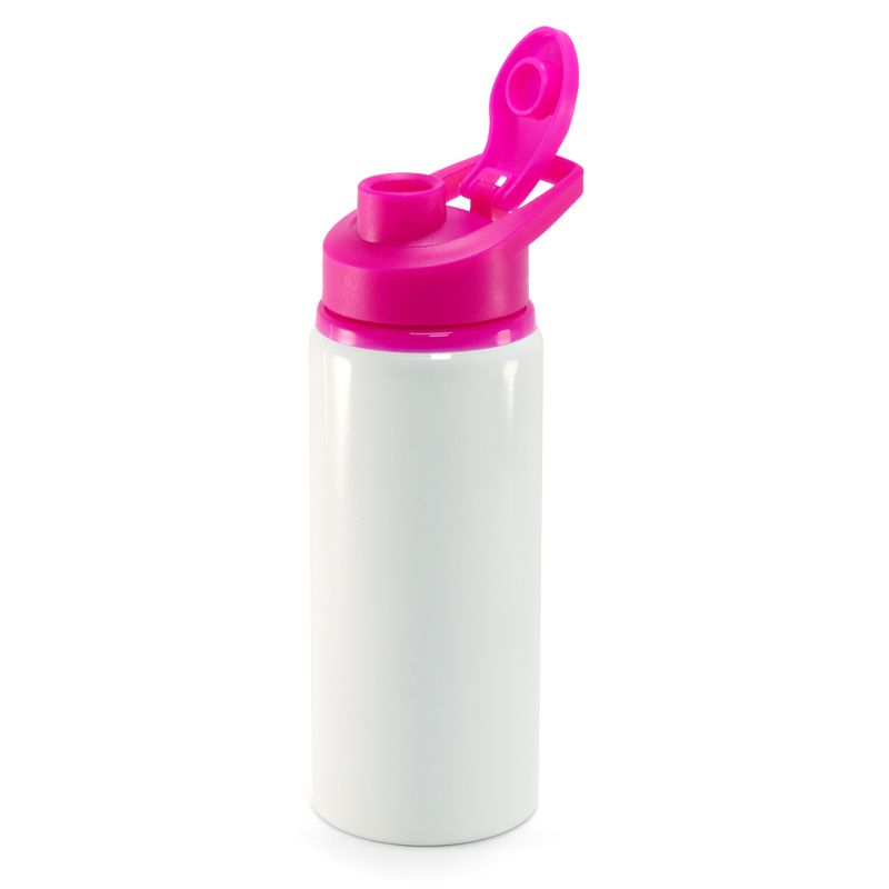 Squeeze de Alumínio Branco Big Mouth – 600ml com Tampa de Pressão Rosa | Superfície Pronta para Sublimação