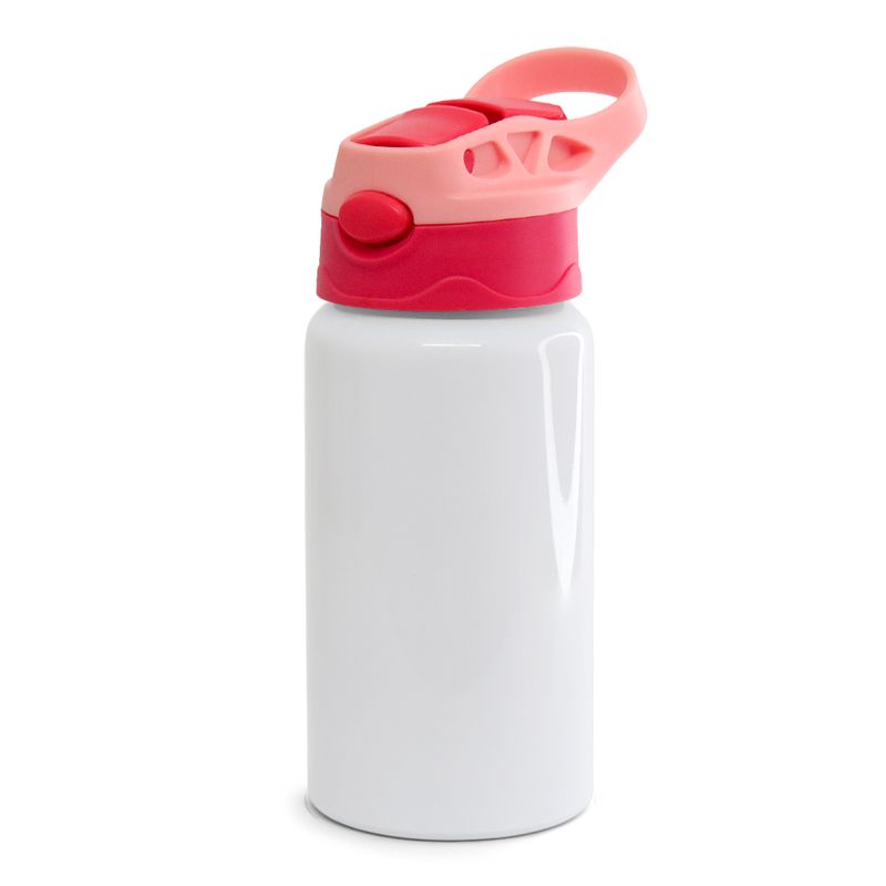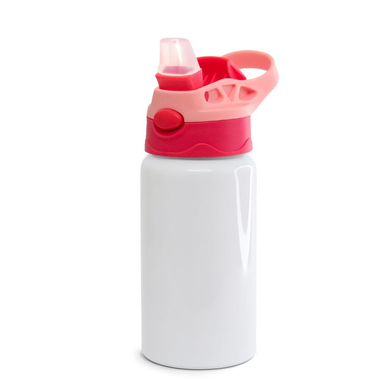 Squeeze de Alumínio Branco Infantil para Sublimação com Bico Automático Tampa Rosa e Vermelha - 500ml