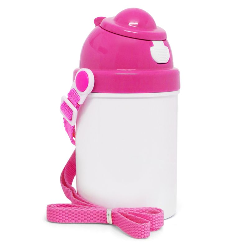 Squeeze de Polímero Branco com Tampa e Botão de Abertura na Cor Rosa - 400ml