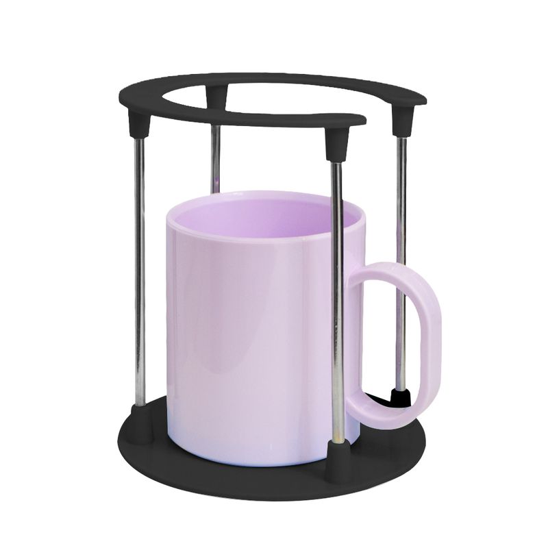 Torre Pequena para Canecas com Haste de Metal e Base em Plástico PretoA Torre feita em polímero com base e topo colorido, com aste cromada de primeira linha.