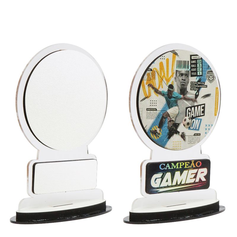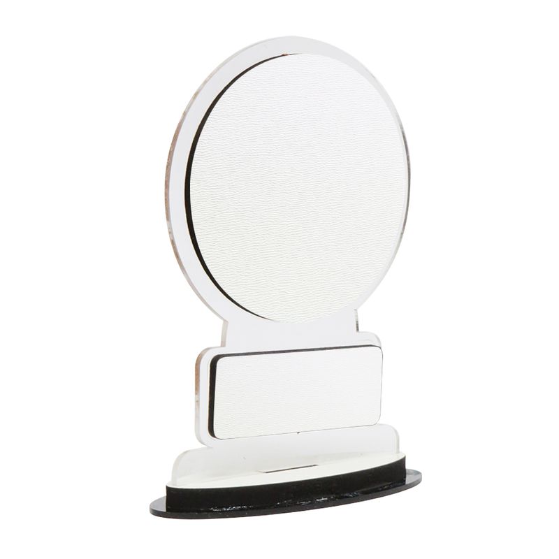 Troféu de Acrílico Cristal com aplique de MDF para Sublimação Resinado Brilho - Redondo - 9x14cm